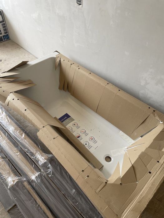 туалет, ванна, бойлер у наявності і готові для встановлення.