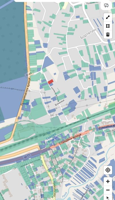 Земельна ділянка Бортятин Львів-Судова Вишня напрямок.; Земельна ділянка 20сот призначення для будівництва житлового будинку правильної форми суха, обкошується, зручний заїзд. Село Бортятин. З боку та навпроти проживають сусіди, одна сторона без сусідів, задня частина 50-метрів вихід до річки. Ділянка знаходиться в заселеній місцевості, не серед поля, на фото задня частина ділянки яка виходить до річки. Є залитий фундамент під будинок 10×11м із незавершеним будівництвом стіни які підлягають демонтажу приблизно 5-7-тис цеглин вкладено. та інший фундамент залито в землю під технічні будівлі та під погріб 2-метри в землю. На території ростуть фруктові та не фруктові дерева. Відстань від ділянки до траси Яворів 400-500метрів, до траси Шегині Львів 1-1,5км, до соснового лісу 100-метрів, до центру смт. Судова Вишня 2,5-3км, до бази відпочинку Сосновий бір 2-км, до зупинки електрички на Львів-Мостиська 1-км, до автобусної зупинки 500м. До Львова метро супермаркет 42-км. За ділянкою є 5-сот підлягають приватизації до ділянки з умовами для копання озера.