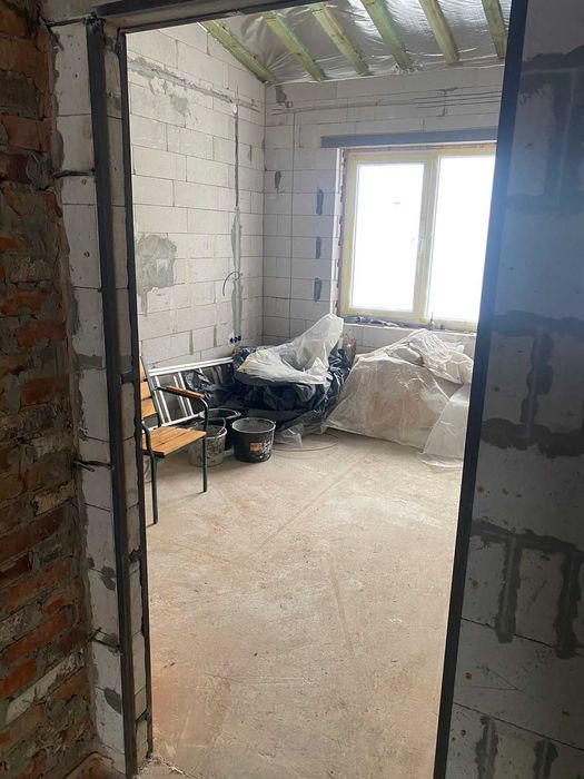 Продаж будинку від власника Титул (Косівщина); Продам будинок с. Косівщина Сумський район (котеджне містичко "Титул") побудований у 2022 році, площа 80 квадратнихї метрів + тераса 20 квадратів. На стадії ремонту, зроблена тепла підлога, сантехніка, опалення, є бойлер, котел, філтри очкищення води (нові, не встановлені), електрика проведена та розведена по будинку (заведено 17 кіловат), утеплення даху ватою 30 см. Продаж від власника. Деталі за телефоном. Є дизайн проект. Для заселення залишилися штукатурні роботи та укладання плитки/ламінату. Ремонт робився для себе.