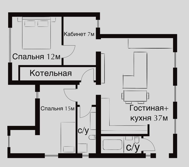 • Подходит для проживания трёх семей с полной автономностью.