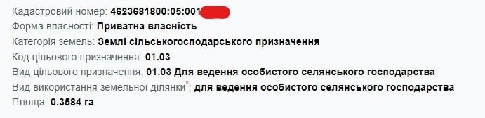 | Земельна ділянка: |