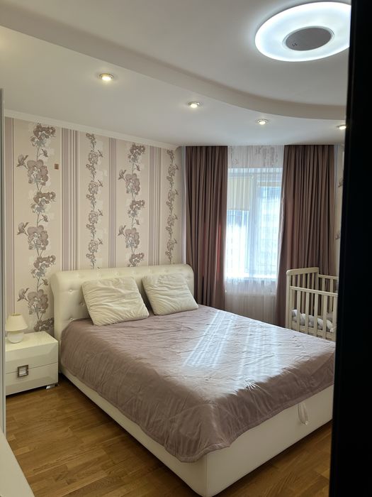 Квартира трикімнатна; Затишна трикімнатна квартира в центрі міста, 5-й поверх з 9-ти, газ, 2 кондиціонери, тепла підлога, лічильники тепла, води, світла, газу. Три балкони. Вікна виходять у двір. Квартира продається з усіма меблями та вбудованою технікою на кухні (Bosch). Можливий торг. Центр міста, біля парку. Тел. 05******32 Оксана або Тел.09******90 Анатолій