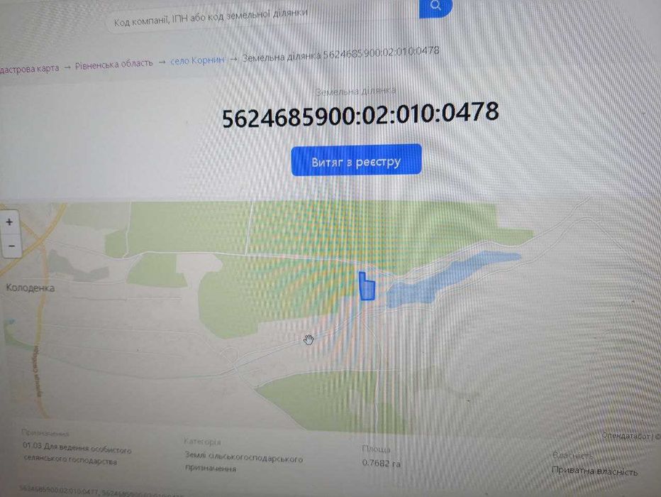 Продам земельну ділянку в с. Колоденка вул Набережна; Продам земельну ділянку вс. Колоденка вул Набережна. 76 сот , знаходиться поблизу ставу. на вулиці наявні комунікації . можливість зміни цільового призначення для будівництва.