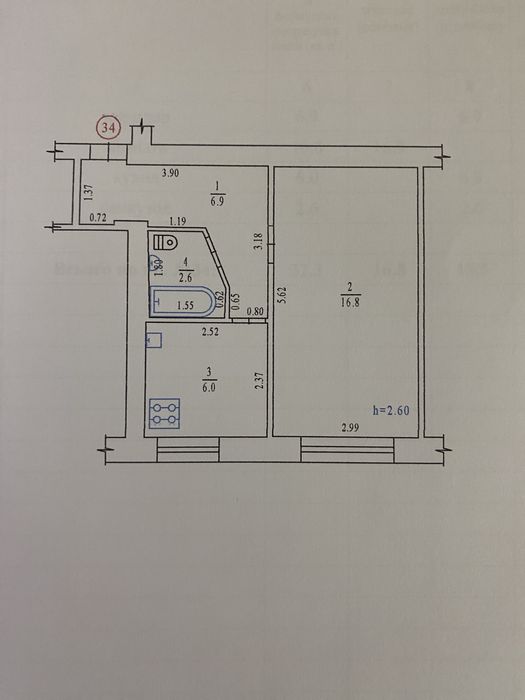 Загальна площа квартири: 32.3