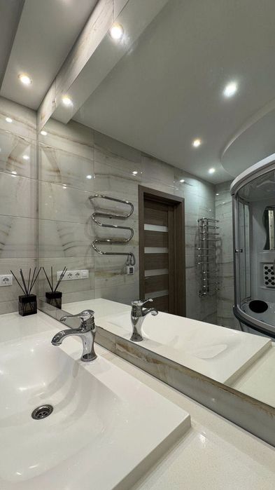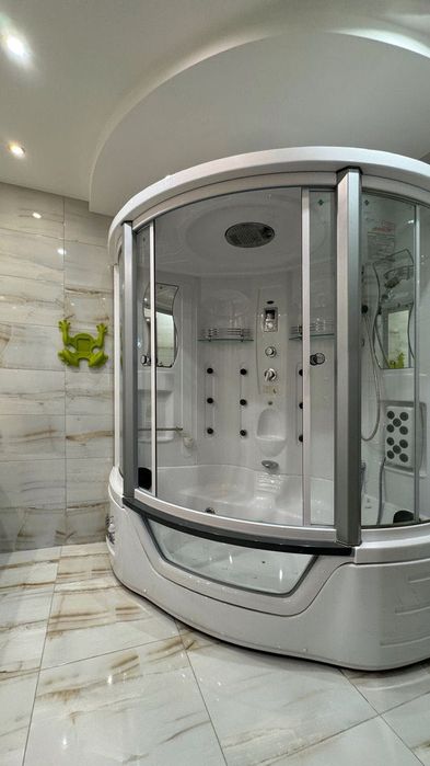 3-й на другому поверсі облаштованій душовою кабіною з ванною, джакузі, гідромасажем, музикою та вмонтованим хамамом. Дзеркало майже на всю стіну. 2 контури освітлення.