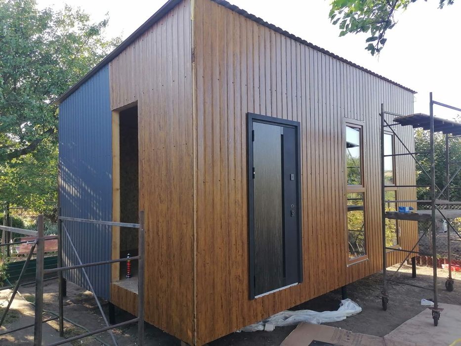 Шевченківський; Модульный дом, sip дома, канадские дома, дача, домик для отдыха; Изготавливаем модульные дома, "канадские" дома, дачные домики, бытовки, вагончики стандартные, бани, вагончики на колесах а также по индивидуальным размерам. Монтаж, сборка, установка на вашем участке. А также есть участки в черте города Запорожья. Домик изготовлен из гнутого металлопроката, самонесущего каркаса. Конструкция домика позволяет транспортировать, загружать, разгружать с помощью крана. И монтировать на свайный фундамент. Модульный дом изготовлен по всем стандартам строительных норм и правилам пожаробезопасности. Утеплитель базальт, стены 100мм, пол 200мм, перекрытие 150мм. Окна металлопластиковые 5ти камерные, двухкамерный стеклопакет. Металлические двери, утеплённые. Дизайнерская отделка. Отдельный санузел с душевым поддоном. Разводка воды с индивидуальным узлом учёта. Электрика разведена в гофре. Стоит узел учёта и контроля электроэнергии. Предусмотрена кухня с монтируемой бытовой техникой (холодильник, стиральная машина, варочная панель, вытяжка). Шкаф купе. Полы ламинат. Натяжные потолки. В качестве отопления тёплый пол и инверторный кондиционер до -25с. Кровля битумная черепица. Витражные окна с выходом на террасу. Данный модуль имеет размер 6*2,4*2,8м, что соответствует габаритным размерам транспортировки без разрешения. Предлагаемый модульный дом изготавливается стандартных размерах, что позволяет совмещать несколько модулей для увеличения площади. Индивидуальный подход к каждому клиенту. Осуществляем доставку и монтаж домов. Звоните и мы предложим вам лучший вариант комфорта. Цена от 320у.е. за 1м2 с коммуникациями без отделки.