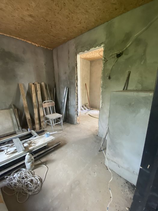 В доме подготовлены штукатуркой 3 комнаты для дальнейшей шпаклевки и поклейки обоев, переложина груба и печь под камин с калённым стеклом обогрев идет на 3 комнаты.