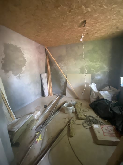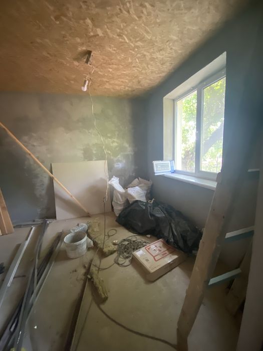 Так же переложен потолок, новый лес и балки, сделан в уровень пол.