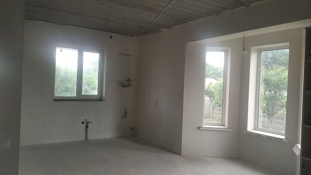 Загальна площа 113кв.м Три спальні, кухня-студіо, 2с/в. Стіни готові під поклейку шпалер або веніціанку. Сходи металеві + дерево. Єлектроопалення. Теплі поли + радіатори . Електрика розведена. Площа учасника 6 соток. По всьому периметру паркан. На ділянці є гараж, погреб, баня . Родючий сад.