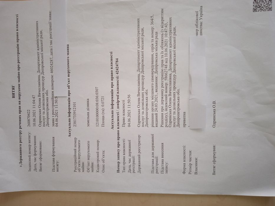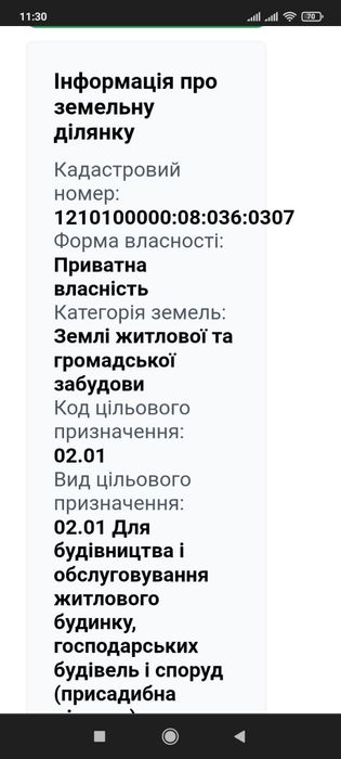 | Земельна ділянка: |