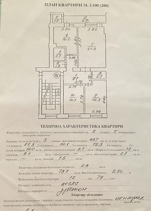 Малехів Вокзальна 9 Дубляни трьох кімнатна квартира 73м2; с.Малехів вул.Вокзальна 9