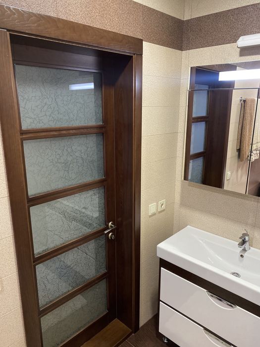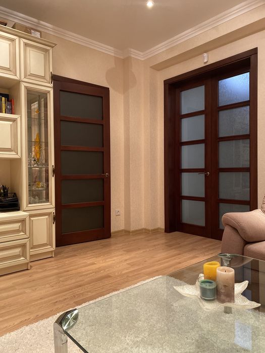 Новая проводка (медная), коммуникации, автономное отопление, домофон с видеонаблюдением, бронедвери с деревянными накладками с ясеня, деревянные межкомнатные двери (ясень), кухня покрашена автомобильной краской, вся техника: кондиционер, печка, встроенный холодильник, телевизоры и т.д.