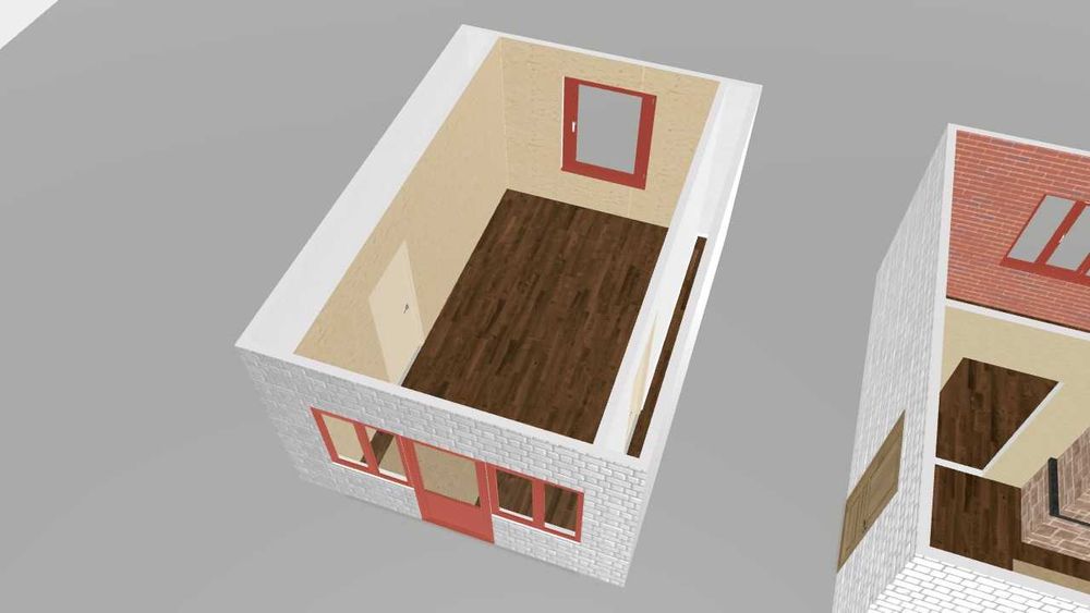 Другий поверх: кімната з двома коморами, з похилими стелями, і "виходом" на балкон (балкона немає, тільки балки - основа).