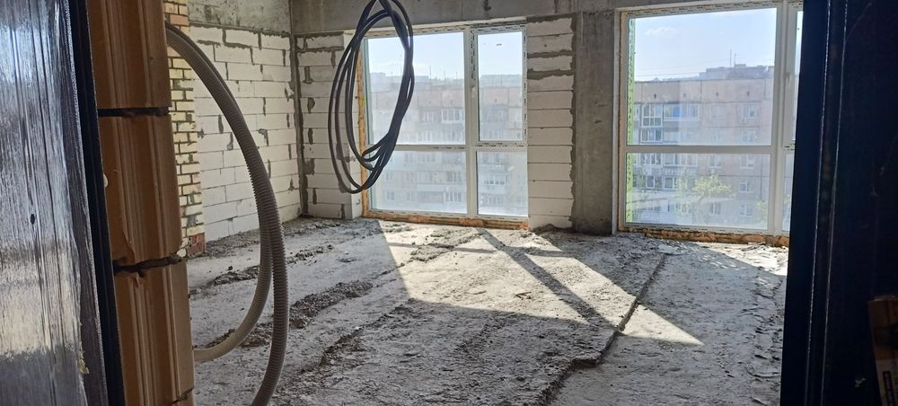 Состояние квартиры после строителей, монолитные ровные полы, стеклопакеты с шумоизоляционным покрытием и защитой от солнца.