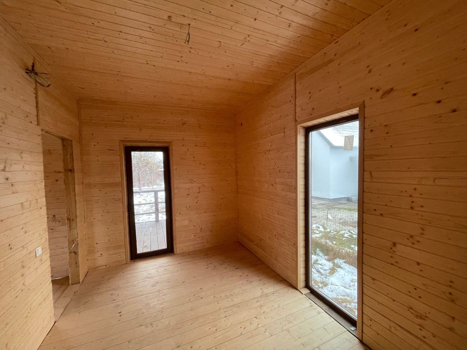 Утеплення мінватою, вікна 7камерні, подвійний склопакет. Всередині і ззовні оббито вагонкою.