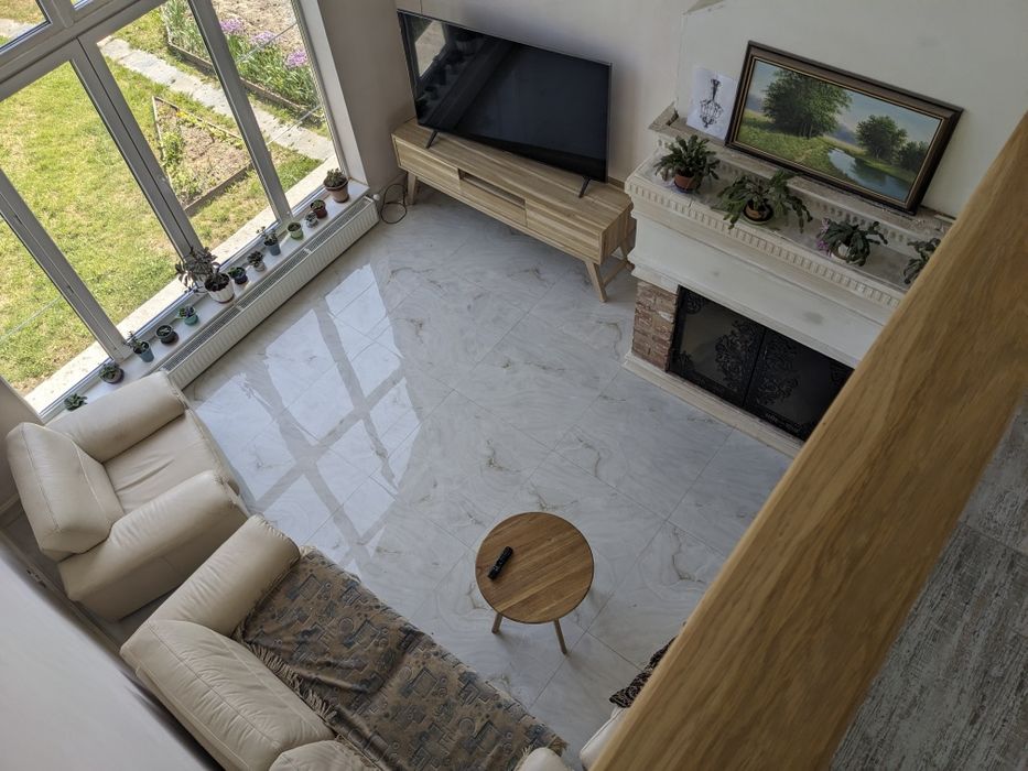 Кухня - студія, два санвузли, майстерня, бойлерна, котельня, гараж в цокольному приміщені, на терасі є барбекю.