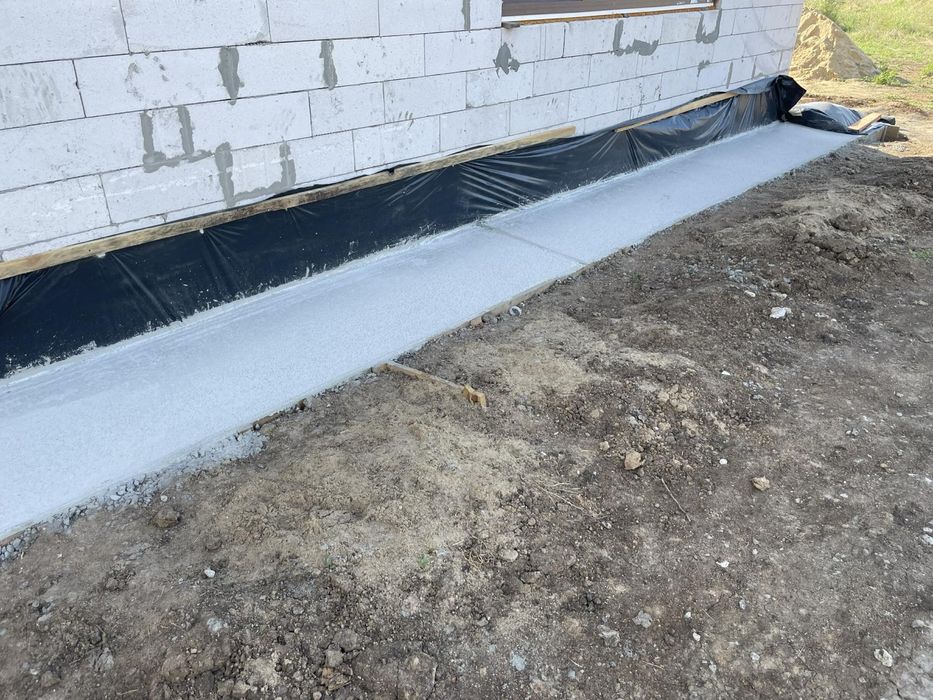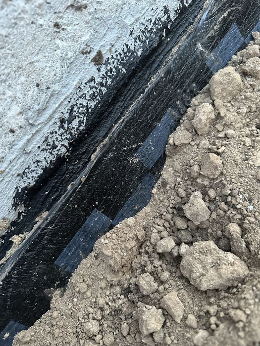 !! На останніх фото вже зроблена гідроізоляція фундамента (гідро пломба+ мастіка+рубіроїд). Замість грунту засипано червоною глиною.