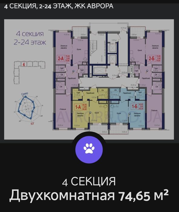 75 кв.м, 17 этаж. 2-х сторонняя квартира,2 санузла,2 гардироба,лоджия