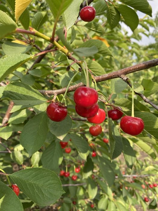 Молодий сад,різноманітні фруктові дерева,горіхи,є хвойні та декоративні .