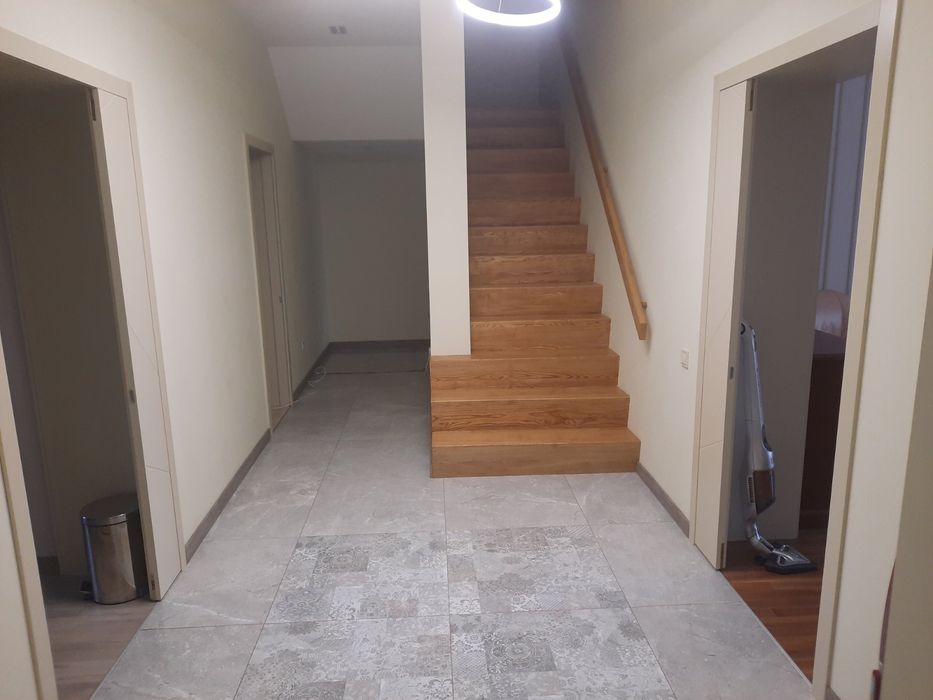 Дім утеплений зв технологією Марморок, 15 см "сендвіч" (тепло та гідроізоляція) що дозволяє у зимовий період суттєво економити на опаленні, а влітку на охолодженні. Дах утеплений та шумоізольований. Для будівництва використовувалися найкращі матеріали. Встановлено сигналізацію (під'еднано до пульту охорони) та систему відеоспостереження з записом подій за останні 10 діб. Міжкімнатні двери від виробника "WestWood" - типу "прихованого монтажу". Уся сантехніка від виробника "Hansgrohe". На кухні встановлена пятиступенева система фільтрації води. Додатковий "аварійний" бак водопровідної води дозволяє безперебійно користуватися водою до 2 діб уразі відключення центрального водопостачання. Гідрофор забезпечує рівномірну подачу води у всіх санвузлах. Кожна кімната дому укомплектована потужними кондиціонерами. В кімнатах загального користування встановлена система теплих полів, а у спальнях - радіатори (згідно санітарних нормативів). Вбудовані меблі виконані на замовлення від відомого виробника меблів. Встановлено резервну систему електропостачання з АВР (до 15 годин без дозаправки генератора) - автоматичне включення та виключення під час перебоїв центрального електроживлення. Двоконтурний котел відомого виробника забезпечує дім теплом та гарячим водопостачанням. Котельна винесена окремо від дома - побудована поруч.