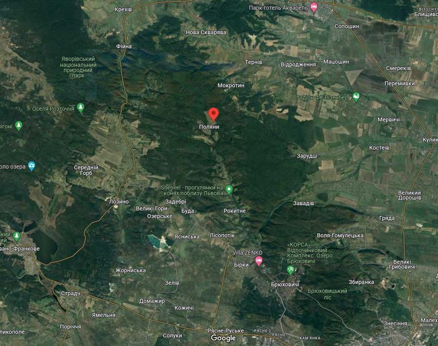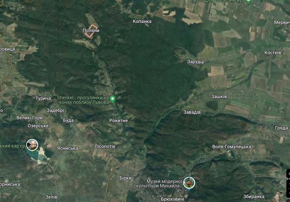 Земельна ділянка (25 сотиків) с. Поляни за с. Рокитне під забудову; Земельна ділянка 0.25 га з цільовим призначенням для будівництва будинку у с. Поляни, що за с. Рокитне Яворівського району. 15 км від околиць Львова. Рекреаційна місцевість, накволо ліс. Надзвичайно тихе, віддалене від міської суєти місце для поціновувачів незайманої природи.