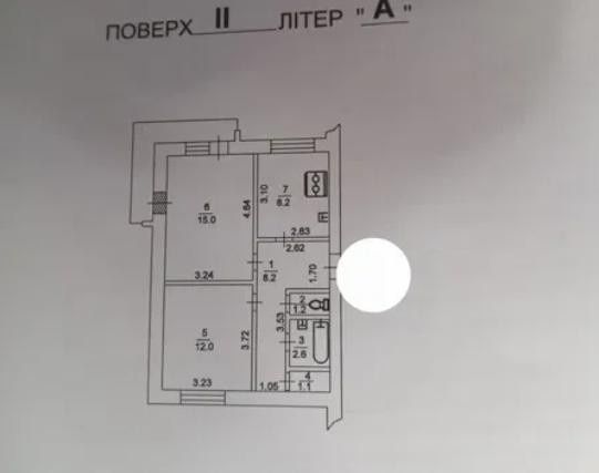 Дві (2) окремі кімнати 12 і 15 кв.м (житлова пл. 27 кв.м.), кухня 8.2 кв.м. (на кухні зараз ремонт), санвузол роздільний, є кладовка, великий кутовий засклений балкон, коридор, як бонус - свій тамбур. Загальна площа 53 кв.м. за новим техпаспортом, хоча в старому договорі купівлі було вказано 51 кв., платимо комуналку за 53 кв. Лічильники на воду (4 штуки, повірено вчасно). Проводка нова, замінена в 2022-2023 році - штробились в стіни, лише на кухні кабель-канал.