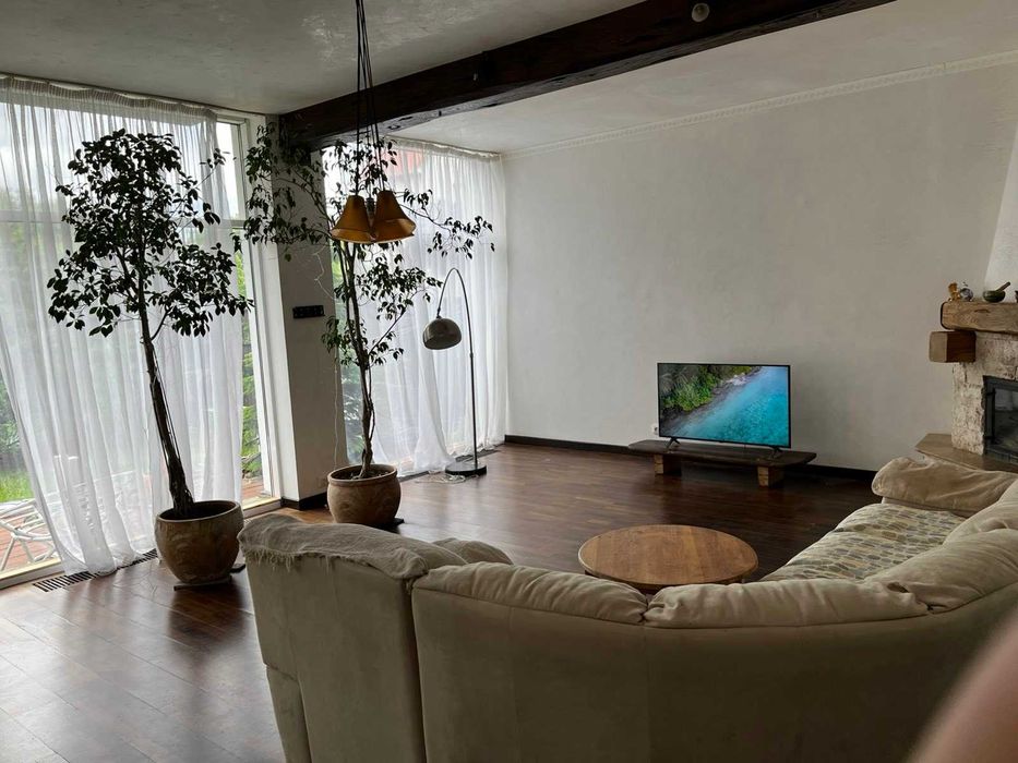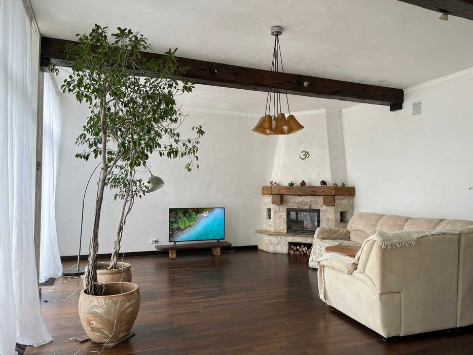 По всьому першому поверху покладена дерев'яна підлога з підігрівом, взимку будинок дуже теплий! Висота стелі 3.3м.