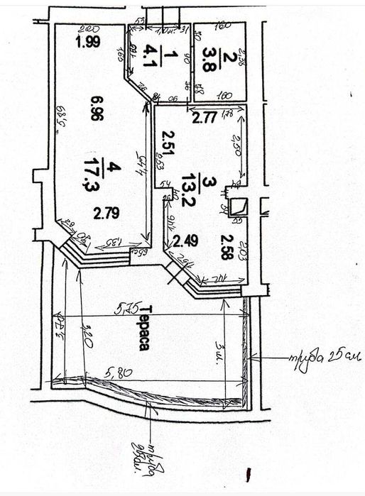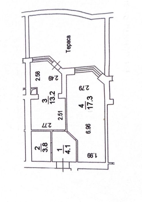 Можливе перепланування на 1,5 кімнатну з невеликими комунальними.