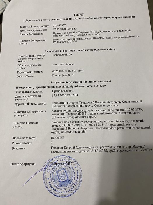 | Земельна ділянка: |