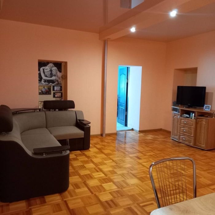• Просторный зал (5х8 м) с паркетным покрытием и встроенным потолочным освещением.
