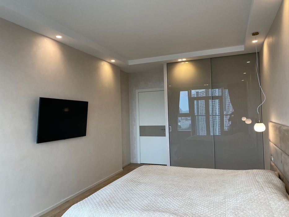 Шевченківський; Продаж квартири 80 кв. м на просп. Берестейський 5Б; Продається простора 2-кімнатна квартира з якісним сучасним ремонтом та плануванням: дві спальні й простора кухня-вітальня. Продаж від власника. Усі фото реальні. Квартира повністю укомплектована всім необхідним: сучасні меблі, техніка, сантехніка – можна одразу заїжджати і жити. Загальна площа 83 м², 24-й поверх, дві окремі спальні, панорамні вікна з красивим краєвидом на центр міста. На території комплексу є трирівневий паркінг, закритий дитячий майданчик та відеоспостереження, у будинку працюють 8 швидкісних ліфтів. Поруч розташовані станції метро Вокзальна, КПІ та Університет, уся ділова та культурна активність Києва – в межах 5 хвилин: елітні магазини, численні кафе й ресторани, затишні парки та сквери. Можливий продаж за USDT або обмін на нерухомість за кордоном.