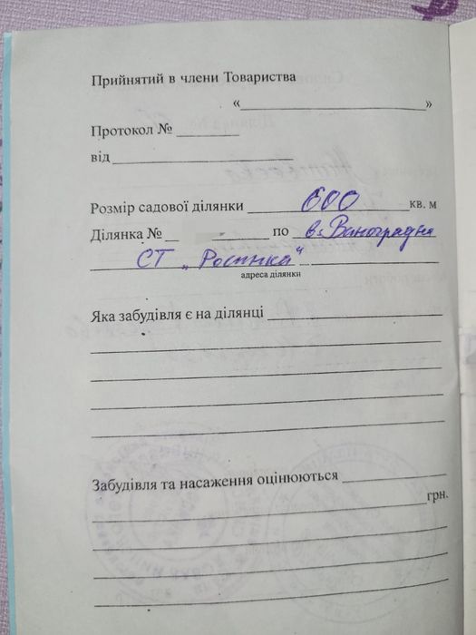 | Земельна ділянка: |