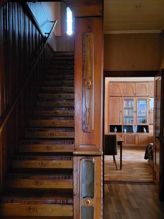 2-й этаж: две уютные спальни с окнами и деревянной лестницей ручной работы. (Также есть чердак на всю площадь дома с отдельным входом со двора)