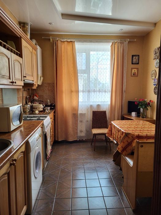 В зале — добротная мебель, аккуратные диваны, встроенная кухня, холодильники и бытовая техника — всё ухожено, чисто и функционально.