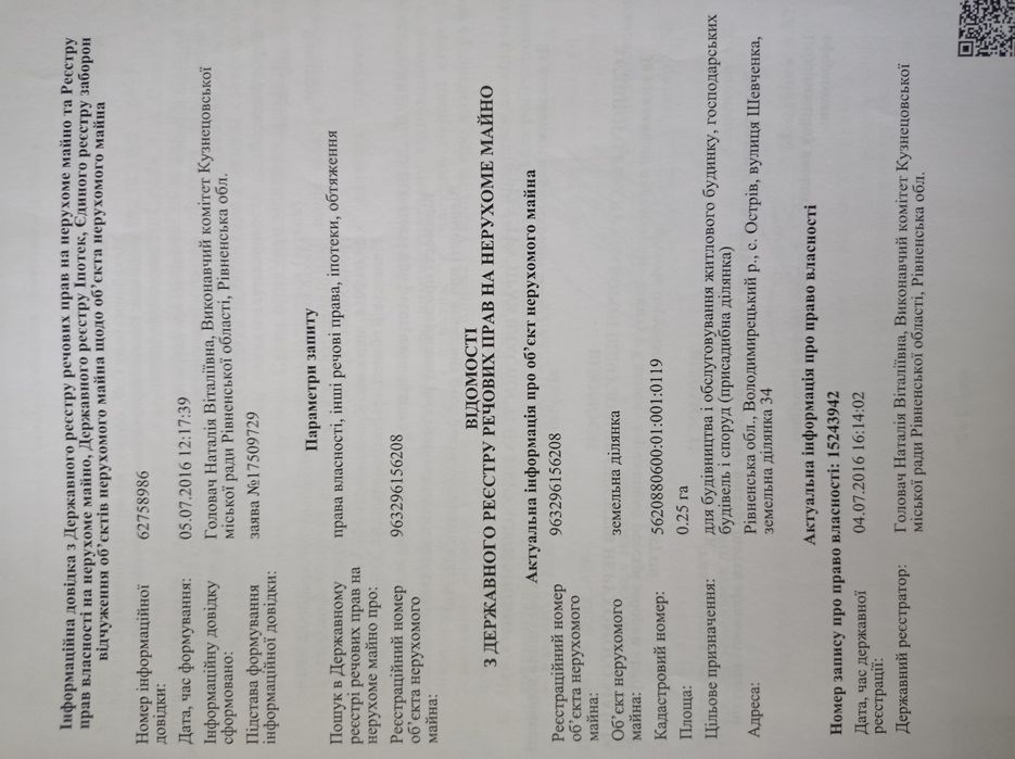 | Земельна ділянка: |