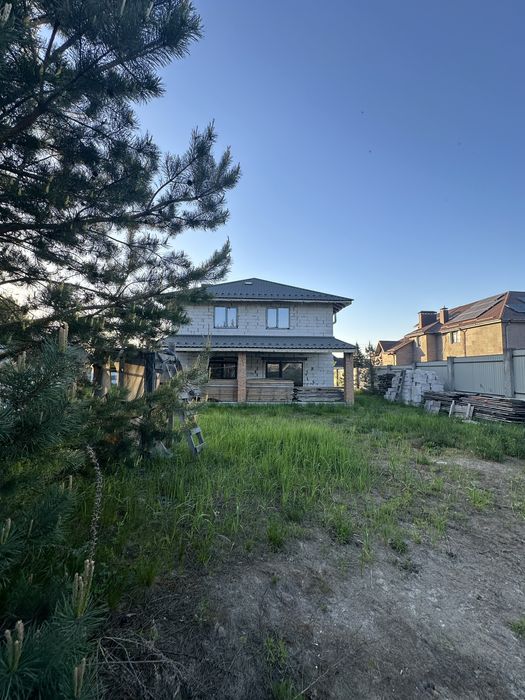 Продам свій новий будинок введений в експуатацію 22.02.2022; Продається будинок , введений в експлуатацію 22.02.2022р. За адресою Броварський район, село Княжичі, вул. Тиха ,4. Будинок під лісом , до метро 12 км, всі дороги до ділянки в селі асфальтовані , декілька виїздів з села , на сусідній вулиці Лісовій є ґрунтова дорога до вулиці Бориспільська 27-а через ліс , до метро Червоний Хутір 5.6км. Ліс , який прилягає до ділянки вже територія Києва . Будинок будувався для себе з 2021 по 2022 рік , не на продаж , був розрахований на сімʼю з 3 дітьми . Всі стіни - блок 400 мм, Кровля - німецька металочерепиця, утеплена зверху по всій площі кровля і утеплення між чердаком і другим поверхом , товщина утеплення -200 мм. Площа будинку по документах 172.4 кв.м( яка отоплюється ), в загальну площу не врахована тераса 40кв.м, ганок- 3.5 кВ.м , та чердак на всю площу поверху біля 60 кВ корисної площі . Чердак оснащений 2 мансардними вікнами , його можна розділити на 2 приміщення ( планувалась там ігрова кімната з гостьовим ліжком чи диваном ). Електрика , інтернет заведені в гофрів на чердак. В будинку 4 спальні , 2 спальні з своїми санвузлами , і 1 санвузол ( з 2 виводами під 2 умивальники на другому поверсі для 2 спалень , всі закладні під душову кабіну, ванну і інсталяція під унітаз встановлена). В будинку 4 санвузли . У всіх санвузлах встановлення інсталяції під унітаз , сушки для рушників , виводи під всю сантехніку . Всі приміщення світлі , у всіх приміщеннях є вікна , у всіх спальнях по 2 вікна , спальні розташовані так , що у всі кімнати потрапляє ранокове сонце . Кухня і вітальня при бажанні можуть бути розділені , мають 2 виходи на терасу . Вікна преміум класу, енергозберігаюче сонцезахисне скло, профіль повність кольору графіт не поклеєний плівкою , а литий. Маскітні сітки також в наявності , ручки на вікнах тимчасові , постійні також додаються ( металеві ). В будинок заведено 3 фази 380 вт, 15кв . Електрокотел встановлений , водяна тепла підлога на весь перший поверх та у всіх санвузлах на 2 поверсі . В спальнях по 2 блоки телевізійних , інтернетних та електророзеток, що дасть можливість не привязуватись до електровузлів при розстановці меблів . Розетки також виведені під дах для підключення новорічних гірлянд чи підсвітки будинку . Котельня оснащена електрокотлом , газовий котел також можна встановити при бажанні, газова труба проходить на дорозі, виводи під пральну , сушильну машини, враховане місце для газового або альтернативного котла ( можлива установка глубинних насосів для опалення, є місце , де їх можна установити на території ) , електрощитова також розташована в котельні . Заведена вода в будинок , свердловина 87 м . Каналізація 2 вигрібні ями з переливом по 5 м. Також каналізація закладена під гостьовий будинок або зону барбекю . Першу зиму будинок опалювався . Штукатурна і стяжка в будинку виконані під чистове оздоблення . Стіни гаража збудовані , парковка залита бетоном. В гараж заведено всі комунікації , на даху гаража планувались сонячні батареї , тому провід від опори також заведений і розводка зроблена . Загальна площа гаража ( гараж планувався на 1 машину і відведене місце для садового інвентарю ) і парковки ( на 2 машини і велосипеди ) біля 70 кВ. Територія під відеонаглядом ( 3 камери по периметру ). Земельна ділянка під будинком 0.16 га , поруч ще 2 ділянки 0,08 га +0.121 га, які прилягають до цієї ділянк