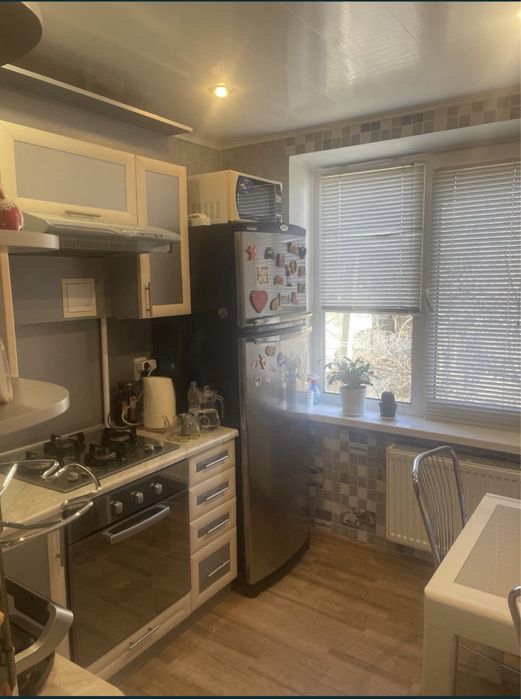 Кухня встроенная, стол, стулья, газовая поверхность и духовка Ariston. Холодильник Whirlpool Кондиционер в зале LG.