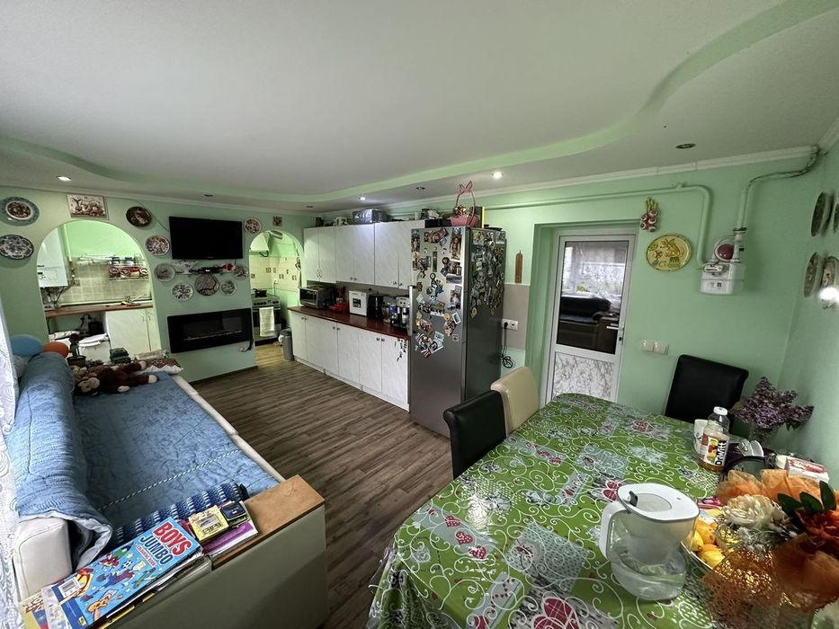 1-й поверх - кухня (поділена робоча зона та столова-вітальня), ванна кімната, кімната, вхід в гараж, де теж є кімната, сходова.