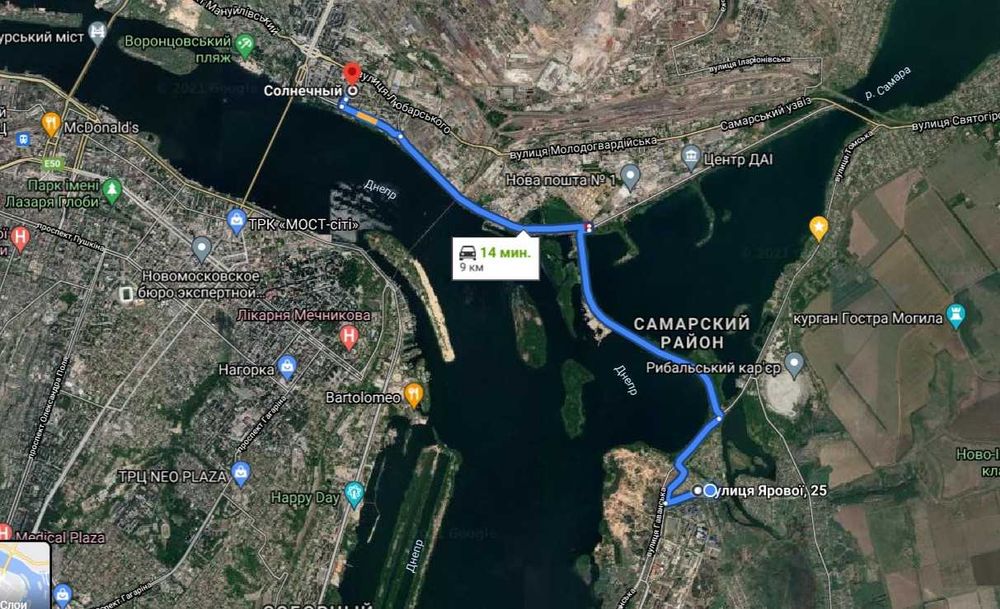 У кроковій доступності супермаркет дорога асфальтована. До центру міста 12 км, до Перемоги 7 км, до Придніпровська 3 км.