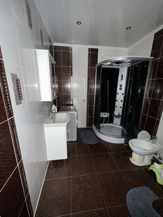 В будинку два поверхи, підвал 28 м кв. 1-поверх: Передпокій, санвузол (душова кабіна, біде, унітаз, раковина), вітальня, кухня, майстер-спальня.