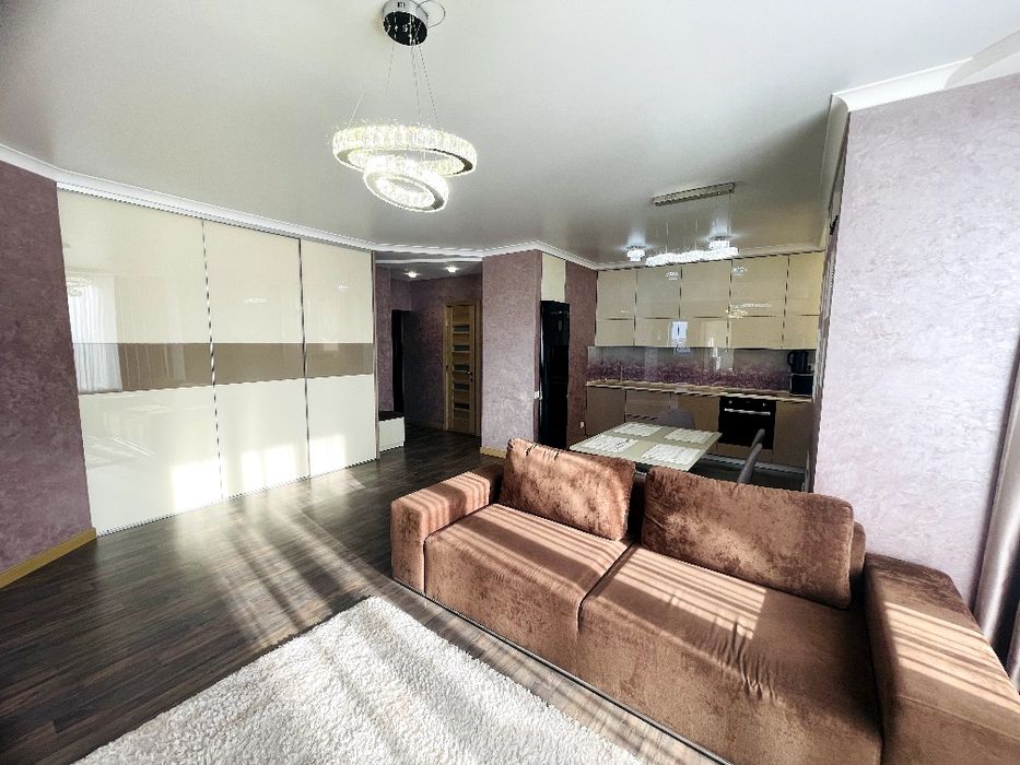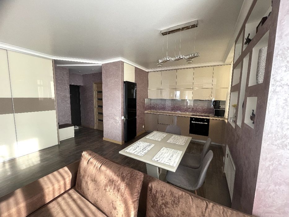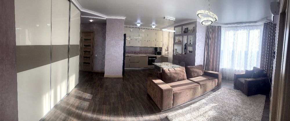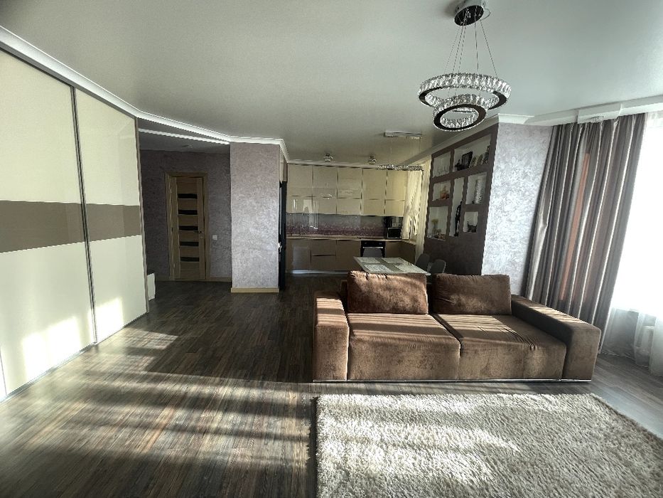 5) В квартирі зроблений доровартісний сучасний ремонт. Ремонт робили для себе, коштів на матеріалі та оздоблення не економили. При переплануванні, після забудовника, долучали дизайнера, що дозволило зробити велику студію, з двома невеликими спальнями.