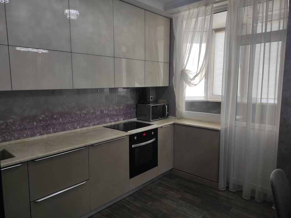 Квартира розташована на 16-му поверсі 17-ти поверхового монолітного будинку. Вікна квартири з сонячної сторони, виходять у двір (не чутно проїжджої частини), через панорамні вікна відкривається чудовий вид на місто.