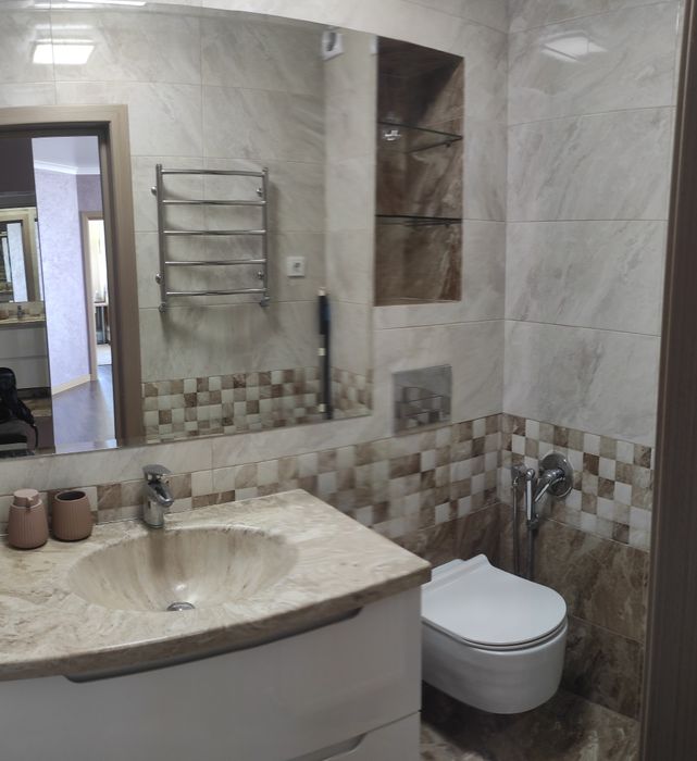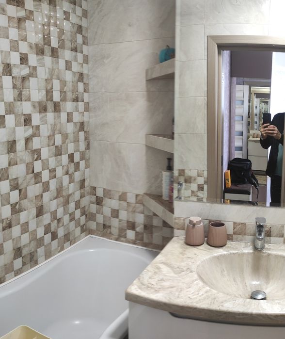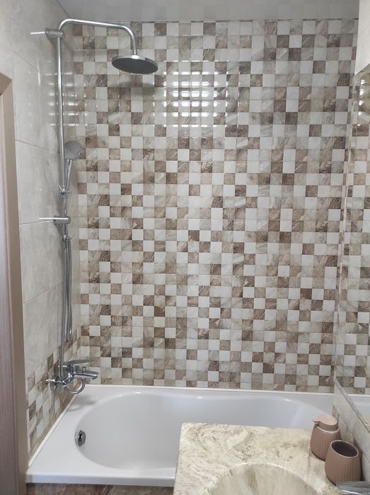 6) в санвузлі сучасна іспанська плитка, якісна сантехніка, раковина зі штучного каменю.