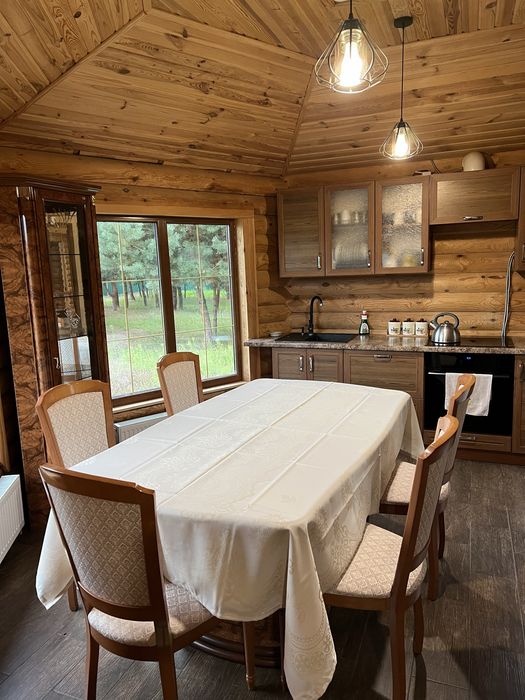Продам дом сруб 210м2 в экологически чистом месте,район Чайки.с мебелью из натурального дерева(ясень,бук),на кухне мебель производства Италия,лестница из ясеня с стильными стеклянными перилами,двери первый этаж из алюминия и стекла каленного.Участок порядка 50-60соток.На участке находится более 200 сосен,елей.Есть возможность увеличить участок до 2-3га и построить свое поместье-хутор-имение-базу отдыха-спа комплекс и все что вам прийдет в голову.В доме два санузла,три спальни,огромный зал,кухня,гардеробная,гараж с автоматическими воротами.Хоз.блок два гаража с автоматическими воротами и свободная площадь под гостевой дом.двор огорожен забором из проф.листа,въезд в двор автоматические ворота.Скважина.Свет не отключают.Имеется новый инверторный генератор на 7кв.Водонагревательный бак на 200л.В дом заведено 220/380В(счетчик день/ночь).отопление электро котел,теплые полы и батареи,Три инверторных кондиционера Cooper&Hunter до -25с(тепловой насос).В ванной комнате ванна Ravak,смесители Kludi, hansgrohe,сантехника VILLEROY&BOCH.На кухне установлена вся необходимая техника премиум класса.Два смарт телевизора 55 дюймов.Она Rahau.Стиральная машина с сушкой Bosch на 8кг.Интернет Днепронет.Дом полностью оборудован охранной сигнализацией и видео наблюдением и подключен к охранному пульту.