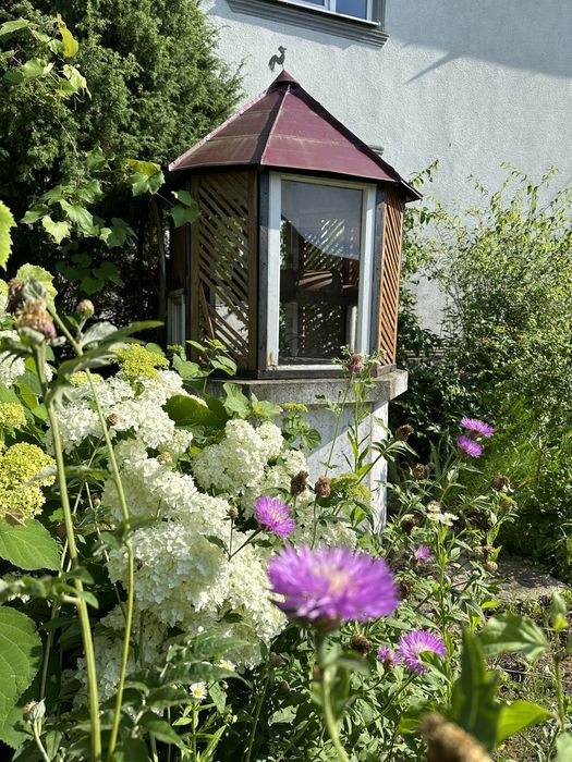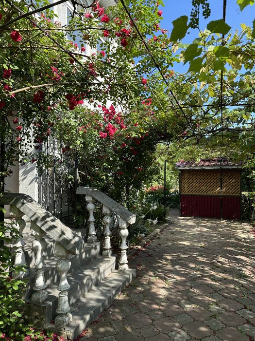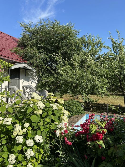 На подвірʼї 4 клумби з різними квітами. Великий родючий сад (персик, черешня, вишня, абрикос, сливи, яблука, груша, горіх). Також понад 10 видів різного сортового винограду.