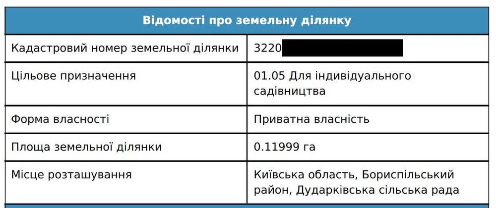 | Земельна ділянка: |