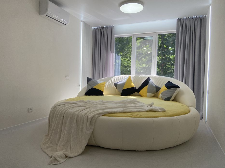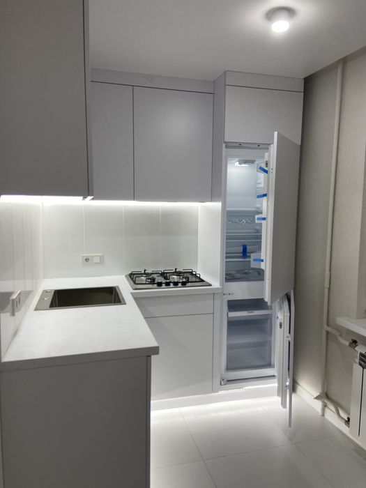 В квартире выполнен демонтаж деревянного пола и стен,залита стяжка,поставлены новые стены из газобетона.заменены все водопроводные трубы и разведены по точкам.заменены все провода электричества,начиная с подъезда и разведены по точкам в квартире.В обеих спальнях проходное освещение (при входе в комнату включается одним выключателем дневной свет,другим выключателем подшторная подсветка и подсветка в баффелях,потом лежа на кровати или диване весь свет выключается) выключателями возле кровати (дивана).проведена проверка газопроводных труб,заменен кран.есть акт Одессагаза.проведены кондиционеры в обе спальни,проведен инет(оптоволокно).заменены мп окна и балконный блок.поставлена новая бронированная дверь.завершена кладка плитки пола в коридоре,в кухне,в су и на балконе.Завершена кладка плитки на стенах в су и в кухне (рабочая зона).Закончены работы по маячной штукатурке стен..установлены чешские радиаторы Bogemia в кухне и в обеих спальнях..Установлен пакетник,все тумблера Шнайдер,основной Зубр..Закончено фактурное окрашивание всех стен в квартире.Следующее покрытие фактуры стен проведено матовым лаком.Проведены работы по монтажу натяжных потолков во всей квартире.Установлены все осветительные приборы в квартире баффелях и подшторных нишах.Свет во всей квартире 3 цветов(белый,нейтральный,желтый).цвет меняется выключателями .Установлены все сантехнические приборы в санузле:угловая ванная,душевая система с тропическим душем и поворотным краном,полотенцесушитель,бойлер с сухим тэном,безободковый унитаз с микролифтом,тумба под умывальник,умывальник со смесителем,зеркало.Завершены работы по укладке ламината Egger (светло-серого с эффектом разлитой воды).Установлены межкомнатные двери и ручки в обеих спальнях,санузле,кухне.Установлены плинтуса во всей квартире.установлены карниз в кухне и карнизы с подшторной подсветкой в обеих спальня.Завершен монтаж встраиваемой кухни с кухонной встраиваемой мойкой,встраиваемой газовой варочной поверхностью на 4 комфорки ,встроенной вытяжкой ,встроенным двухкамерным холодильником и стиральной машинкой.Установлены кондиционеры.В квартире есть вся необходимая мебель и техника.СПС менее 3-х лет.