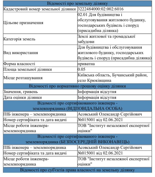 | Земельна ділянка: |
