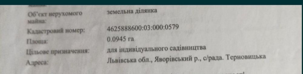 | Земельна ділянка: |
