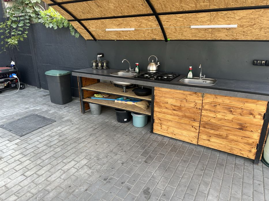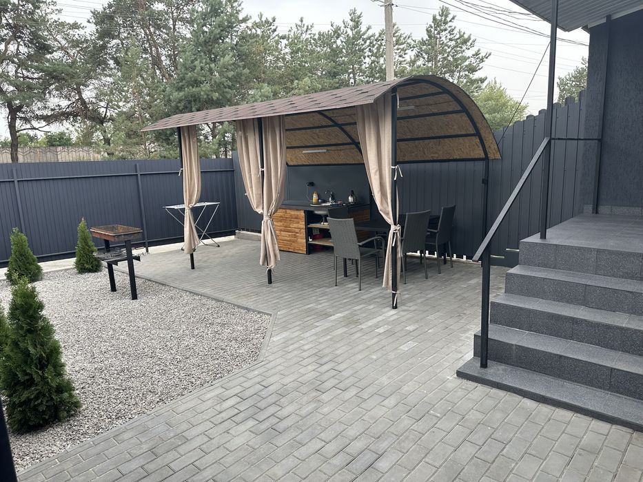 Есть генератор. Есть парковка для авто. На территории двора - зона отдыха: мангальная зона, беседка, летняя кухня. Территориально квартиры находитятся на территории Коттеджного городка возле Голубого озера. 4 км от Камянское (левый берег). До Днепра 35км.